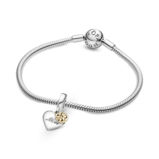 Charm Colgante de Dos Tonos Árbol de Familia y Corazón