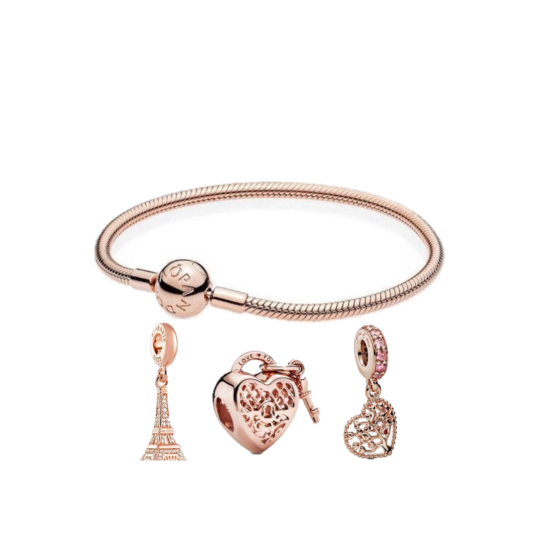 Los brazaletes y charms están hechos en baño de plata en acero rodinado.